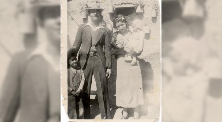 Fotógrafo no identificado, Familia Chacón, ca.1935, plata/gelatina, 2½ x 3½”. Colección “Reviviendo el Pasado”. No. 43.Efraín Chacón, esposa e hijos