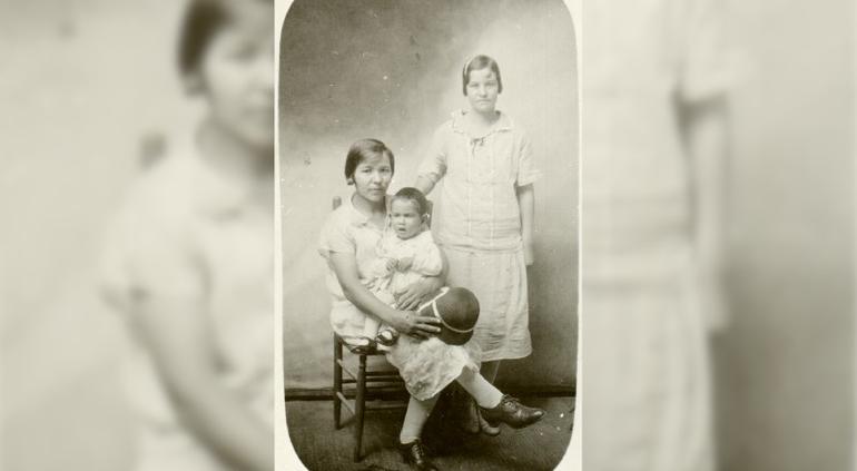 Fotógrafo no identificado, Familia Sigala, ca.1930, reprografía. Colección “Reviviendo el Pasado”. No. 50.Guadalupe y María Sigala, y José Reyes Sigala