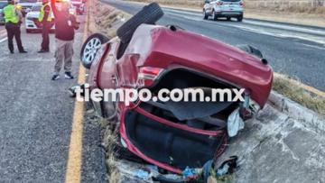 El conductor de un vehículo Camry perdió el control del volante y volcó a la altura del kilómetro 28 de la carretera a Cuauhtémoc, el automotor quedó en la canaleta entre ambos sentidos de circulación.
