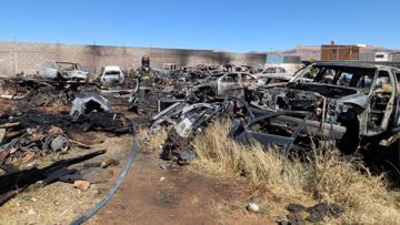 Al quemar hierba seca en un predio de Granjas del Valle, un adulto mayor provocó un incendio que calcinó 22 vehículos; bomberos y Policía acudieron; el hombre en silla de ruedas resultó ileso.