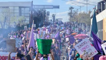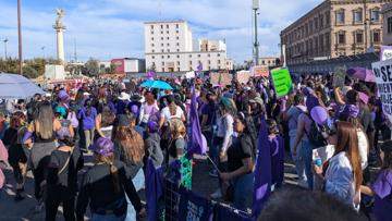 Los colectivos feministas que marchan este domingo 8 de marzo en conmemoración del Día Internacional de la Mujer, y que partieron alrededor de las 4:00 de la tarde desde la Glorieta de Pancho Villa, arribaron al primer cuadro de la ciudad cerca de las 5:15 de la tarde, como parte del recorrido que realizan por distintas calles de la capital.