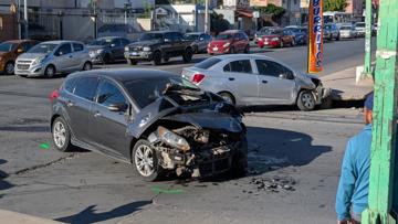 Sin lesionados, un Ford Focus y un Beat chocaron en Av. Juan Escutia y M. G. Cossio; de este a oeste el Focus impactó al Beat, con semáforo en verde, y lo proyectó al alcantarillado.