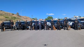 Esta mañana, el presidente municipal Marco Bonilla realizó la entrega de 10 ejemplares caninos jóvenes a la Dirección de Seguridad Pública Municipal, los cuales están certificados y plenamente aptos para integrarse a labores operativas.