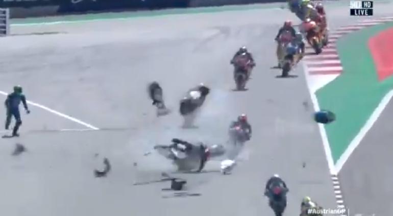 En la carrera de motocicletas Moto2 del GP, celebrada en Austria, un accidente múltiple sorprendió a los espectadores tras ver como destrozaron una motocicleta.