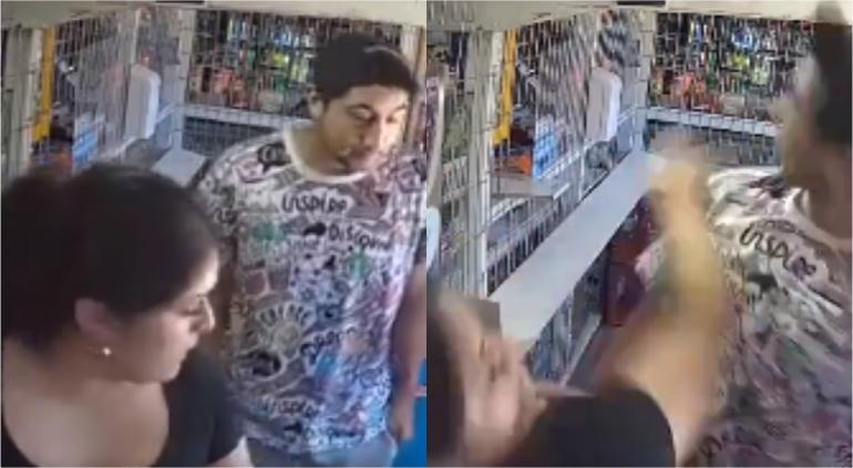 María Estrella en ese momento fue a pedir ayuda. Según se aprecia en un segundo video, un grupo de hombres ingresó y comenzó a golpear al agresor hasta que lo sacaron del establecimiento.