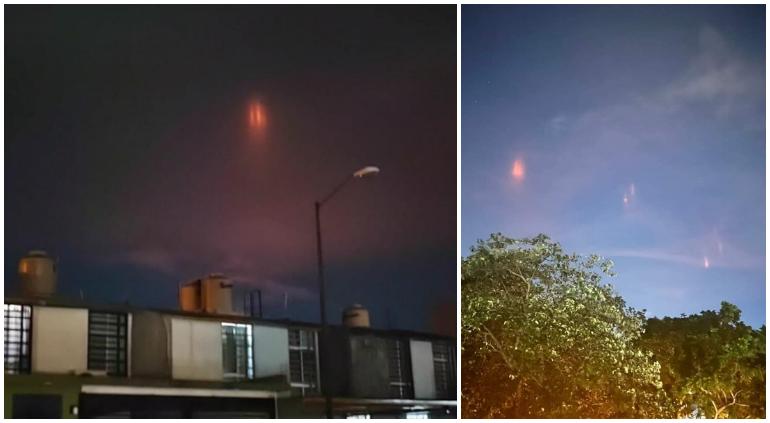 En la ciudad de Villahermosa, los espectros rojos fueron avistados durante la tarde-noche del lunes durante unos 30 minutos en los que aparecían de forma intermitente.