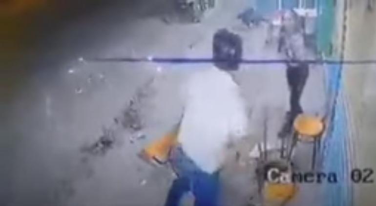 Se observa al individuo golpear y sujetar la cara de la chica y estrellar su cabeza contra la cortina metálica de un establecimiento.