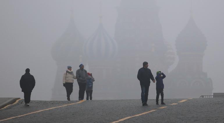 A través de Twitter, usuarios mostraron la magnitud de la niebla en las calles de Moscú, las cuales impedían ver bien.