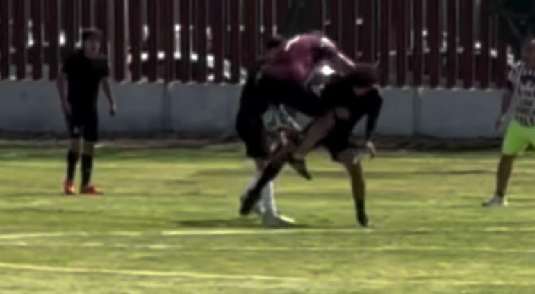 El exfutbolista quiso pasar entre dos jóvenes para hacer la jugada que se volvió su marca personal pero al brincar soltó el balón y ya no pudo continuar.
