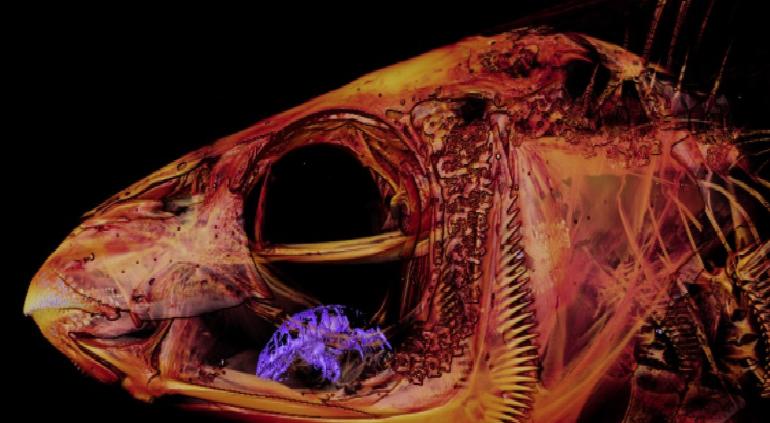 El grupo de expertos de la Universidad Rice, EE.UU. realizó recientemente una radiografía de la cabeza de un pez y descubrieron el ‘tenebroso’ parásito que habitaba en el pescado.