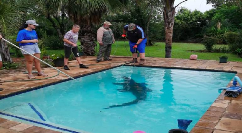 Breytenbach mencionó que tras descubrir al animal dentro de su piscina llamaron a especialistas, quienes con lazos y equipos de rescate intentaron sacarlo del agua.
