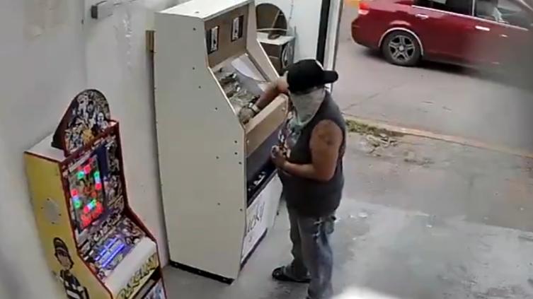 El robo a una máquina tragamonedas se registró en un establecimiento en Tabasco. Las imágenes ya se han hecho virales en redes sociales.