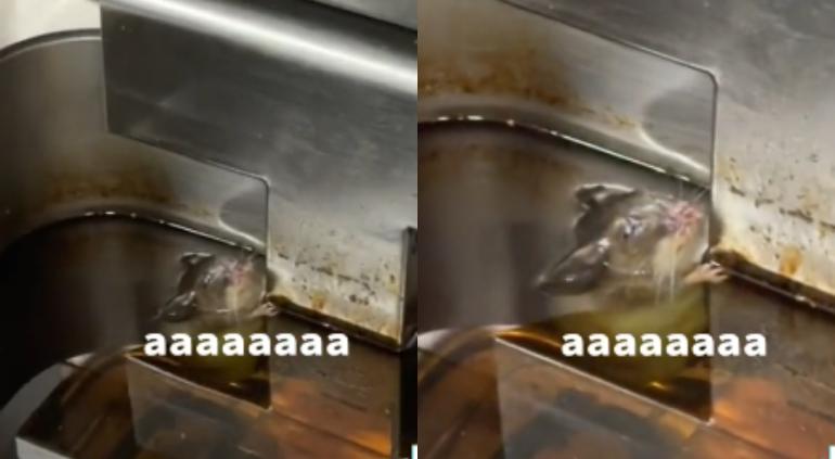 Un video se volvió viral en redes sociales luego de que un joven compartiera que encontró una rata ahogándose en aceite de la freidora.