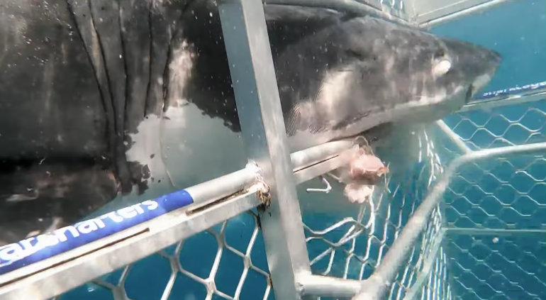 Enorme tiburón blanco choca contra jaula ¡con buzos dentro! (VIDEO)