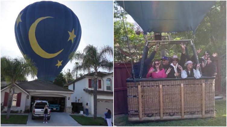 🇺🇸😲| California: Hombre sale a su patio trasero y encuentra a 13 personas en una canasta de “globo aerostático” mirándolos.