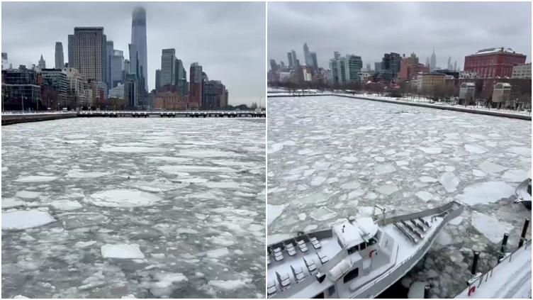A través de las redes sociales, se viralizaron varios videos en donde se puede ver cómo gran parte del Río Hudson quedó congelado debido a las bajas temperaturas que se dieron en Estados Unidos por la tormenta invernal.