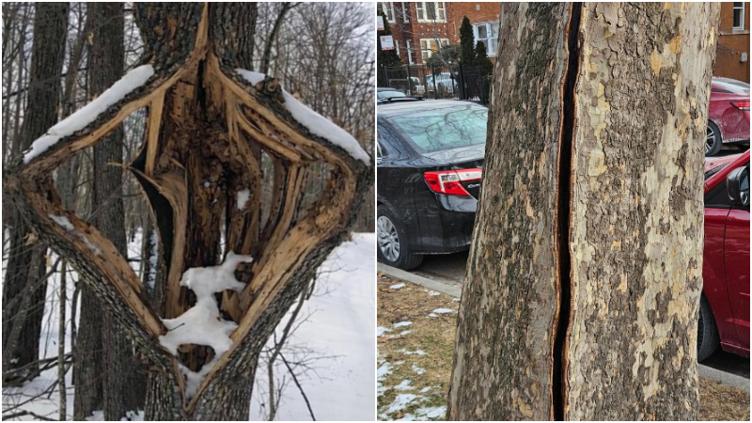 VIRAL: corteza de árboles se agrietó por frío extremo en EU 🎦