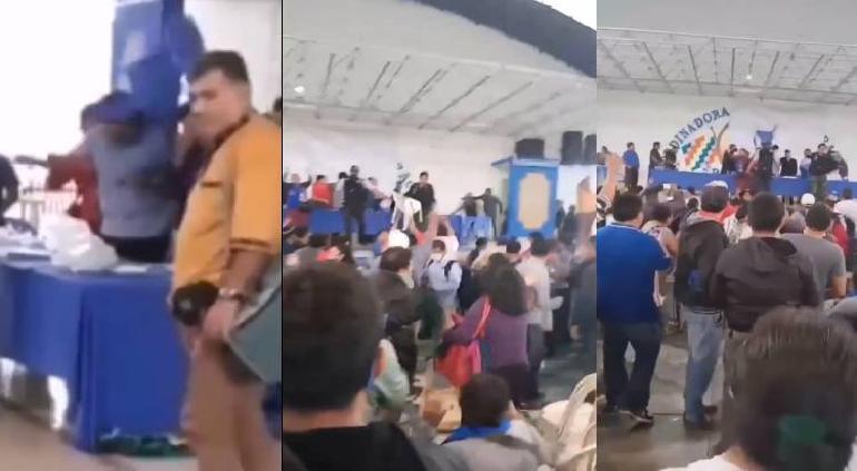 De acuerdo con los videos difundidos en Twitter, muestran cómo uno de los asistentes lanzó una silla de plástico hacia donde estaba Morales, momentos más tarde una de las personas dio un golpe en la cabeza al expresidente.
