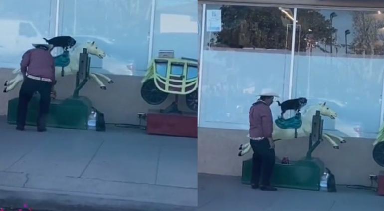 En el video que logró volverse viral puede apreciarse a Don Guille junto con su perrita a quien subió a un juego mecánico, mientras su dueño disfrutaba salir con su tierna mascota.
