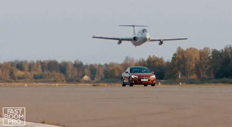 En la pista de aterrizaje de un aeropuerto cerrado, con la ayuda de un piloto intrépido fue grabada una riesgosa exhibición de un avión y un Tesla a su máxima velocidad viajando juntos.