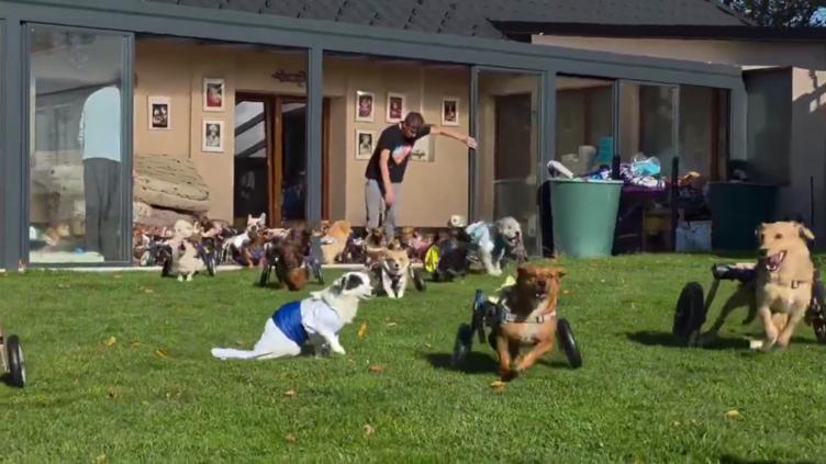 A través de las redes sociales, se viralizó un video en el que se puede ver cómo una familia les creó a varios perritos con discapacidad sillas de ruedas de todos los tamaños para que pudieran salir a jugar como cualquier otro perro.