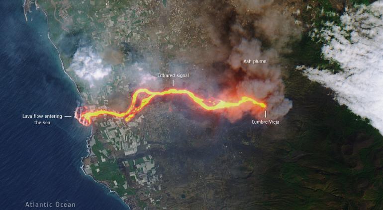 Más de una semana después de la erupción del volcán Cumbre Vieja, las imágenes satelitales han ayudado a las autoridades a monitorear y manejar la crisis.