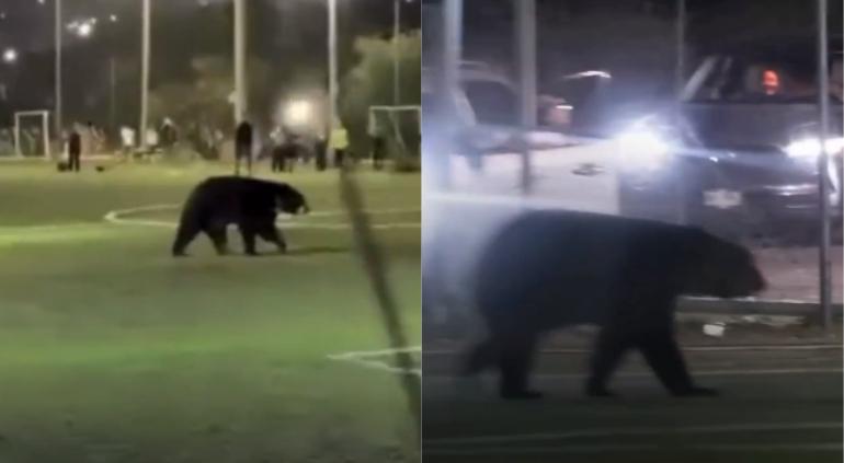 Un entrenamiento nocturno de fútbol infantil fue detenido luego de que un oso apareciera dentro de unas canchas deportivas en el municipio de San Pedro, Nuevo León generando sorpresa entre los asistentes.