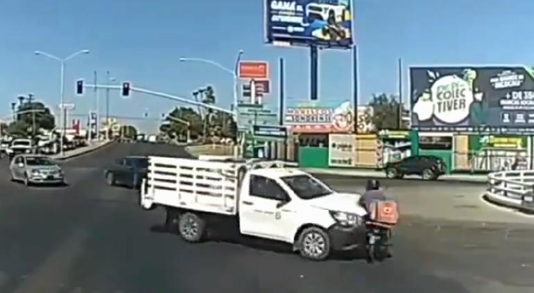 En las redes sociales, se viralizó un video del momento en el que un repartidor de aplicación salió “disparado” luego de que se pasara el semáforo en rojo y una troca lo arrollara. Por ahora se desconoce el estado de salud del repartidor.