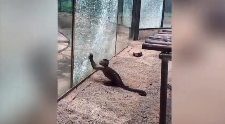 Los visitantes del zoológico de Zhengzhou, en la provincia china de Henan, se sorprendieron al observar cómo un mono capuchino utilizaba una piedra puntiaguda para romper el cristal de su jaula, durante el pasado 20 de agosto.