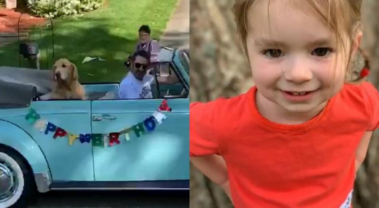 Vecinos organizaron el desfile de perros para que la niña de 3 años, amante de los animales festejara su cumpleaños durante la cuarentena en EU.