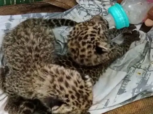 Las autoridades encargadas de la vida silvestre en la India revelaron que un hombre rescató a dos cachorros de leopardo que encontró en su granja.