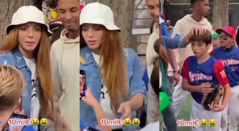 A través de redes sociales, comenzó a viralizarse un video en el que Sasha, uno de los hijos de Shakira, le toma fotos con un fan y al terminar le dice "son 10 mil euros".
