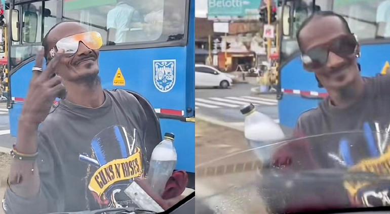 Hombre sorprendido que trabaja de limpiaparabrisas en Cali, sorprendió con su parecido al cantante rapero Snoop Dogg.
