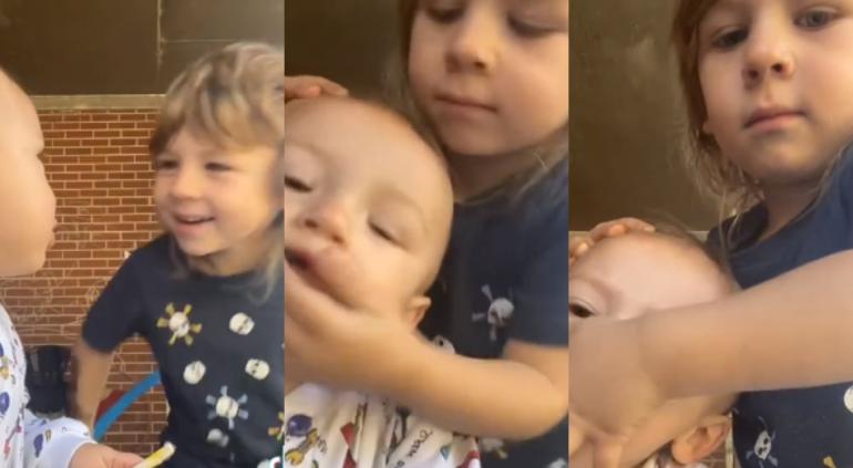 El video muestra como el hermano mayor notó un objeto extraño en la boca del bebé e inmediatamente accionó, agarrando su cara y le abrió la boca para sacar el objeto de manera segura.