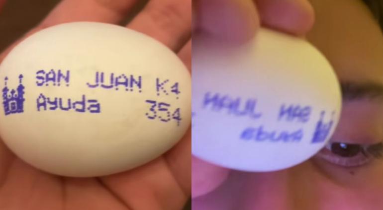Viralizan mensajes de “ayuda” en huevos San Juan