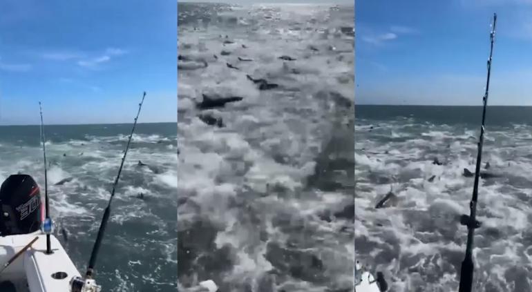 Viralizaron video de tiburones hambrientos rodeando a pescadores