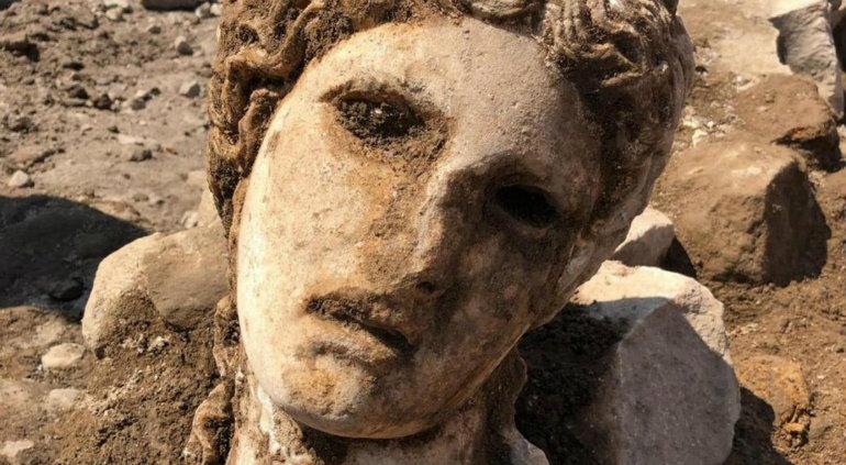 Abbiamo appena rinvenuto questa bellissima testa negli scavi di via Alessandrina... davvero una grande emozione! pic.twitter.com/ZgH8MHCVOM