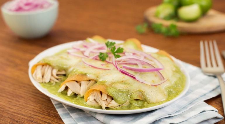 Cocina estas ricas enchiladas suizas calientes y, si deseas, puedes acompañarlas con arroz, frijoles refritos y guacamole.
