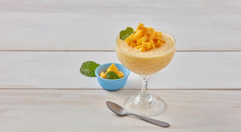 El mango sago es un tipo de postre contemporáneo de Hong Kong, fue inventado en 1984 por Lei Garden, ha mantenido su popularidad hasta ahora, este postre se puede encontrar en el menú de muchos restaurantes chinos así como en Singapur, Guangdong y Taiwán.