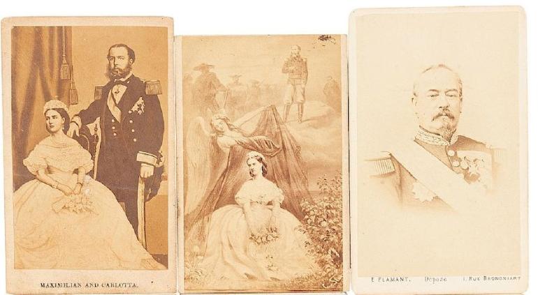 El precio del álbum estima entre 50 mil y 60 mil pesos. Las fotos de Carlota y Maximiliano son de François Aubert, el fotógrafo que siguió al emperador hasta el momento de su fusilamiento. El resto son imágenes de Cruces y Campa, la más importante firma fotográfica de aquel entonces.