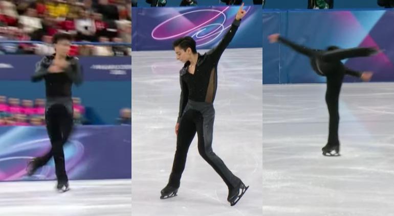La rutina tuvo varias ejecuciones perfectas que le dieron el valor total de las piruetas y con ello logró conseguir 219.06 puntos, después de obtener 143.50 en el programa largo más 75.76 en la eliminatoria que lo dejó en cuarto lugar de su grupo.