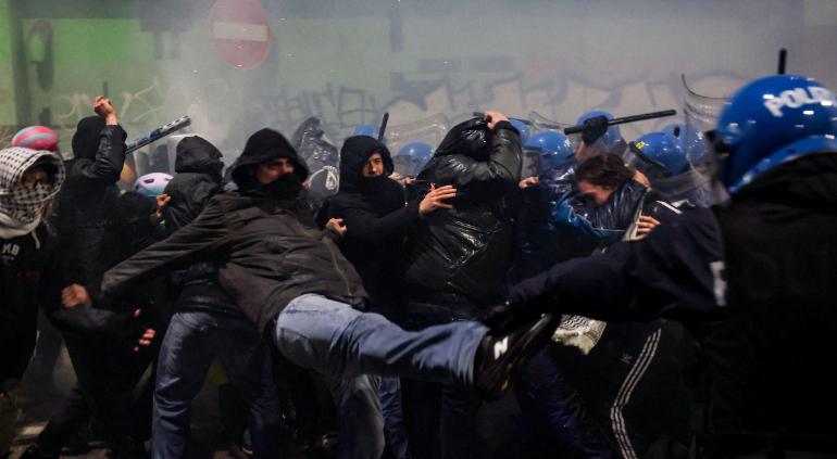 Decenas de manifestantes lanzaron petardos e intentaron acceder a la fuerza a una autopista cerca de la sede de los Juegos Olímpicos de Invierno, en Milán, por lo que fueron repelidos por policías italianos con gases lacrimógenos y un cañón de agua.