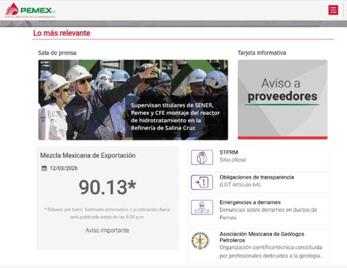 Al cierre del día 12 de marzo, Petróleos Mexicanos (Pemex) reportó que el barril de mezcla mexicana de exportación llegó a los 90.13 dólares.
