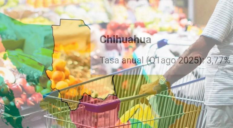 Durante la última quincena, la inflación del estado de Chihuahua tuvo una importante desaceleración, aunque todavía está entre la mitad de las entidades con peor dato anual, al registrar 3.77%.