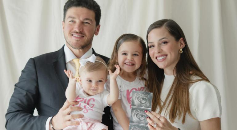 Samuel y Mariana son padres de Mariel e Isabel, quienes portaron playeras de “hermana mayor” en el video del anuncio.