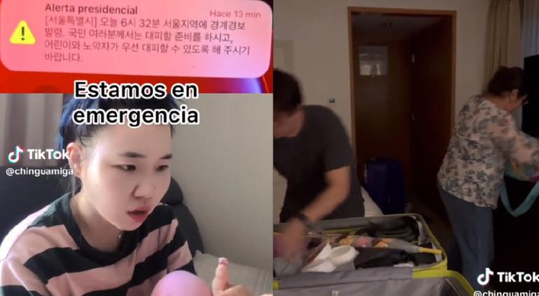 Incluso subió un video en el que se ve cómo le llegaron los mensajes y como su novio y suegra están empacando rápido para poder refugiarse en el sótano del hotel debido a que el mensaje decía que evacuaran Seúl.
