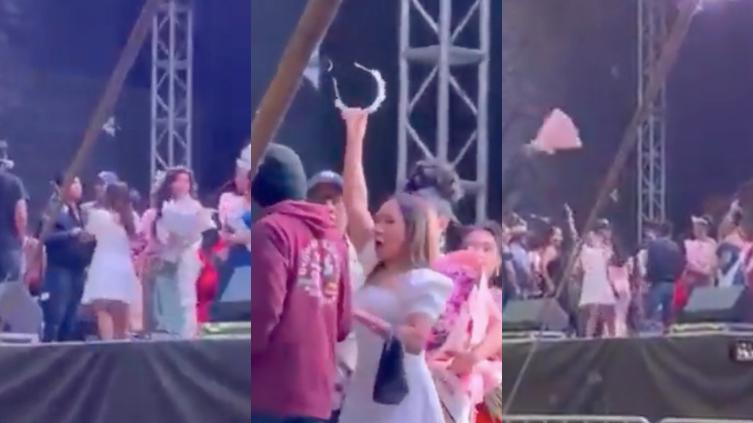 Por medio de redes sociales se compartió un video que muestra el momento en el que al finalizar el certamen “Señorita Acatlán 2026” en Puebla, una mujer le arrebató la corona a la que ganó y acusó de fraude.