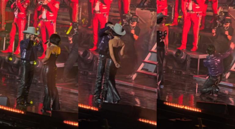 ¿Hay algo ahí? Nodal se arrodilló ante Ángela Aguilar durante show🎦