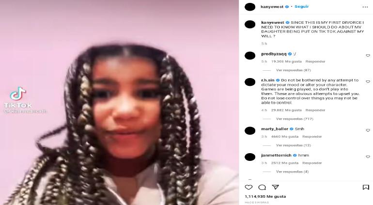 Kanye Wets, ahora conocido como Ye, usó sus redes sociales para mostrar su molestia debido que desde noviembre su hija North comparte una cuenta de Tik Tok con su madre Kim Kardashian.