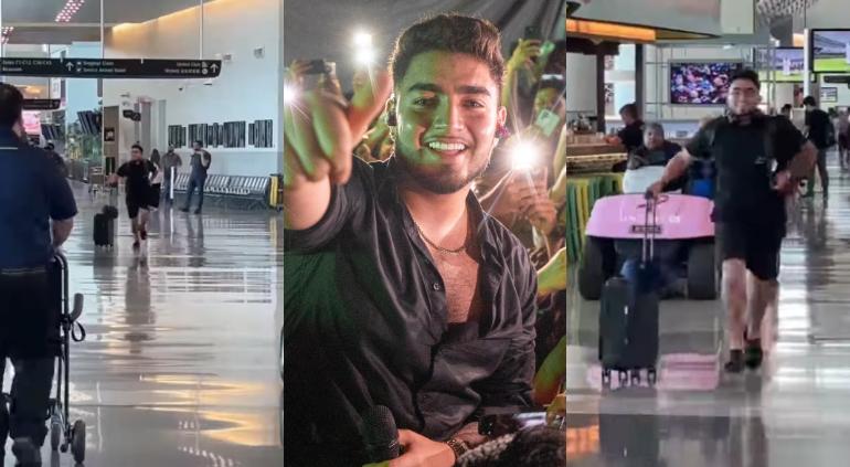 Julio, uno de los vocalistas de La Arrolladora nuevamente fue olvidado por la agrupación, ahora sucedió en un aeropuerto.